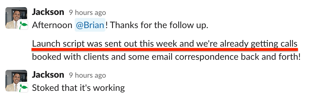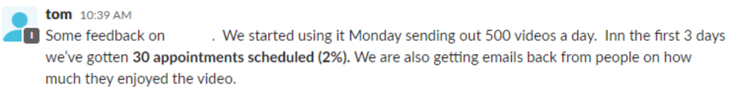 Tom generated 30 sales calls in his first 3 days launching our systems and has generated more than 200 calls to date...